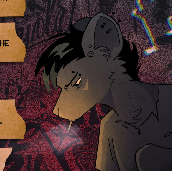 Pepperjack is a 23 Y/o Trans-Masc jackalope in disguise who has dabbled in writing, illustrating, animation, comic art, video editing, music production, game development, and a myriad of other things.His blood is about 0.5% ginger beer and cheap coffee. He is most often seen with his beat-to-shit docs with purple/yellow laces, his homemade patch pants, and crudly cropped tank-tops.His narrative projects are inspired by 90's midnight television, pulp fiction, punk and grunge subcultures, and crime films. His work focuses on topics of mental health, addiction, abuse, and queer identity, as well as shining a spotlight on the rawer, less flattering side of humanity. Flawed character writing is his specialty.