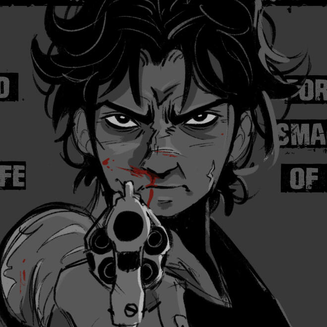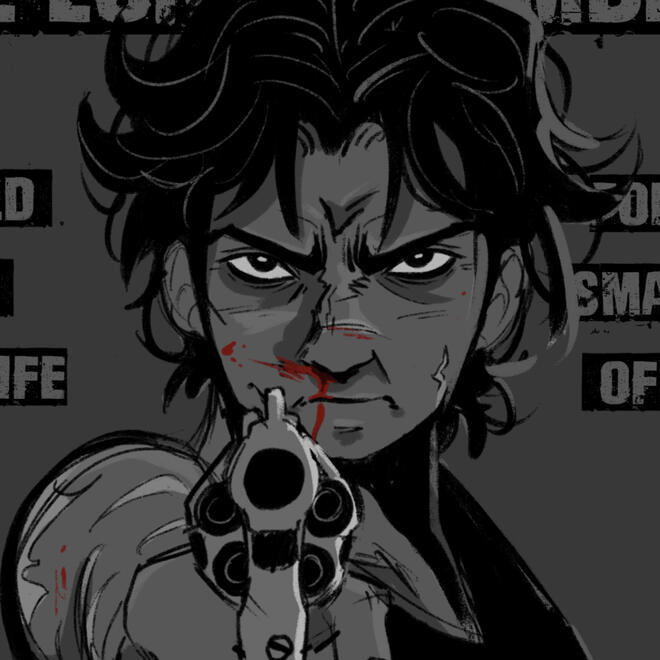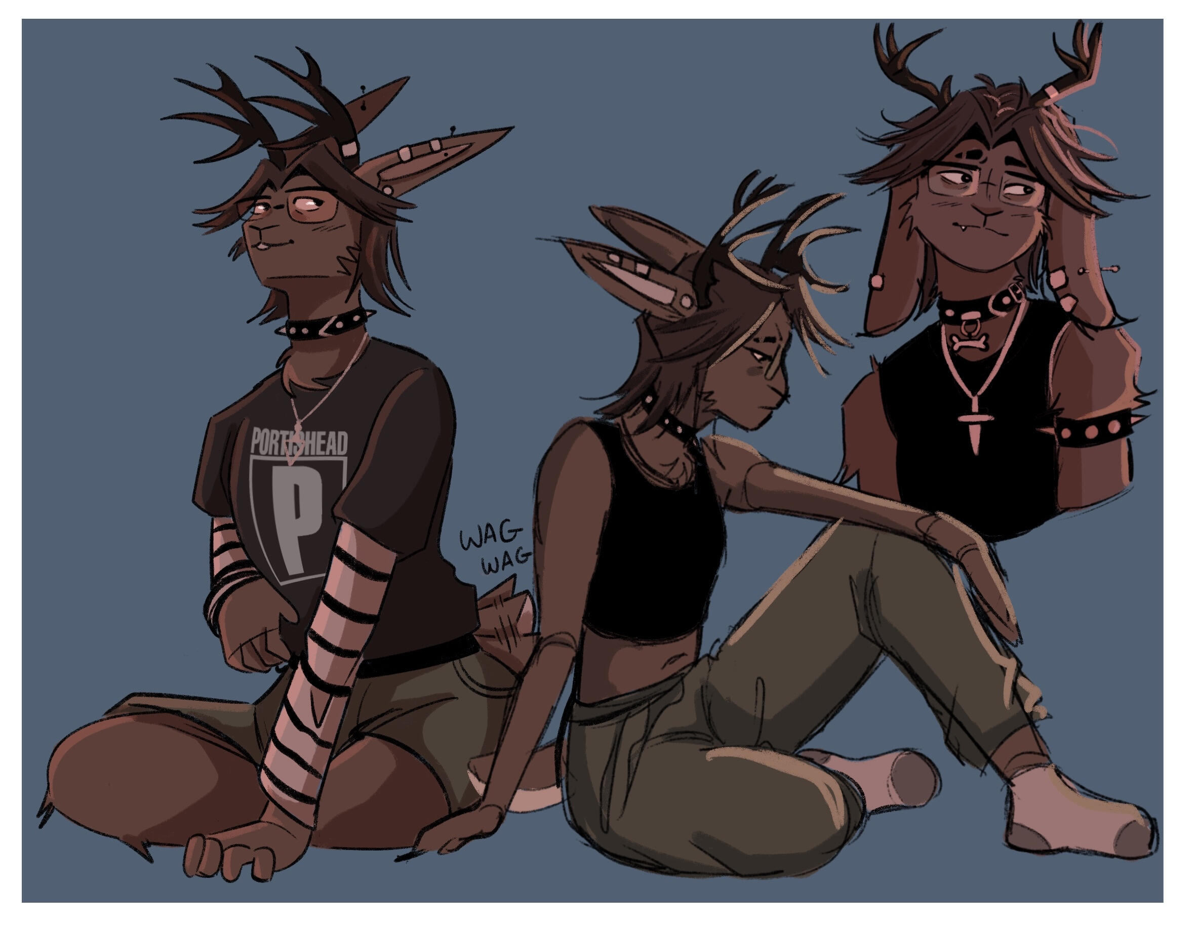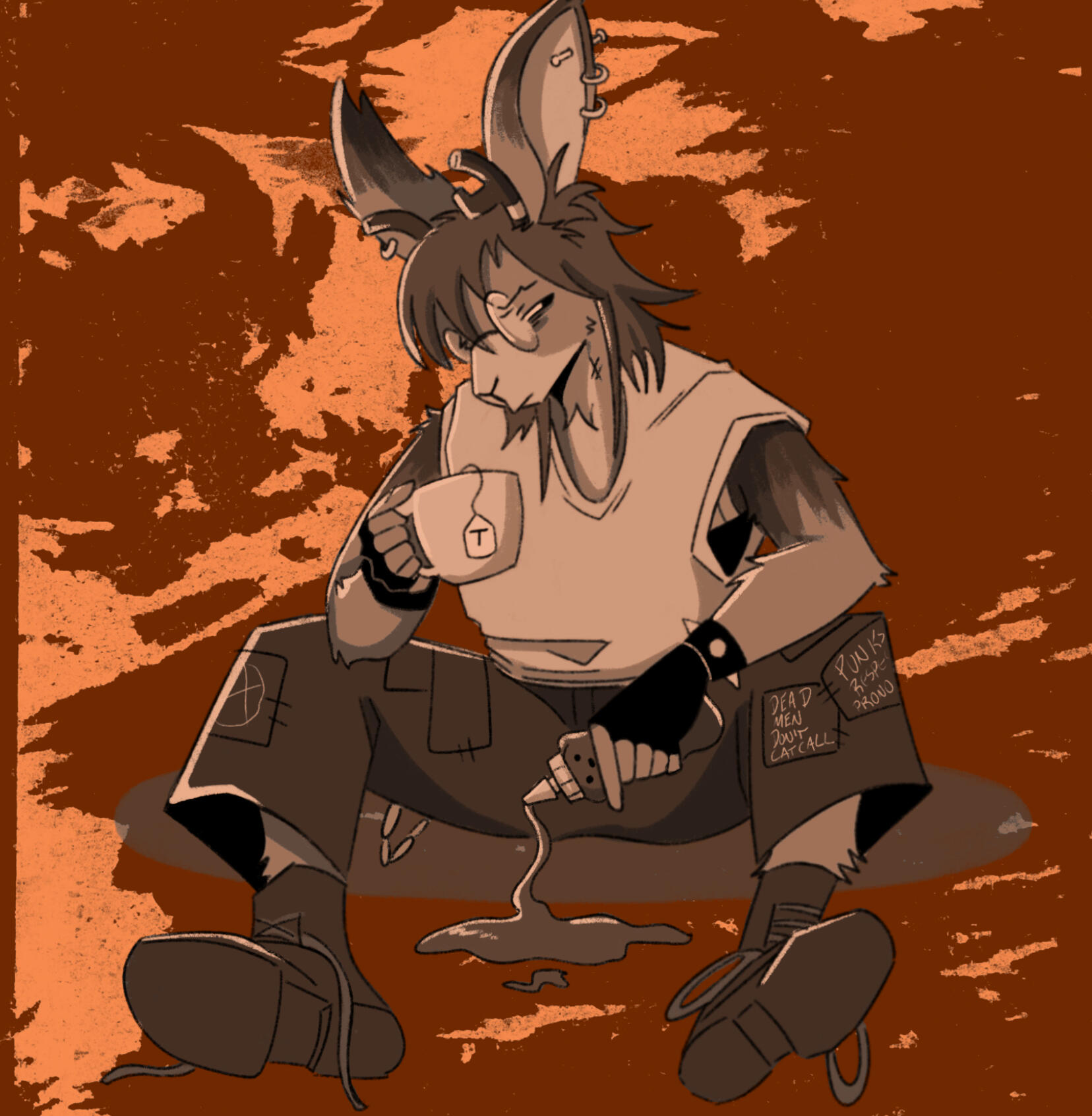 Pepperjack is a 23 Y/o Trans-Masc jackalope in disguise who has dabbled in writing, illustrating, animation, comic art, video editing, music production, game development, and a myriad of other things.His blood is about 0.5% ginger beer and cheap coffee. He is most often seen with his beat-to-shit docs with purple/yellow laces, his homemade patch pants, and crudly cropped tank-tops.His narrative projects are inspired by 90's midnight television, pulp fiction, punk and grunge subcultures, and crime films. His work focuses on topics of mental health, addiction, abuse, and queer identity, as well as shining a spotlight on the rawer, less flattering side of humanity. Flawed character writing is his specialty.