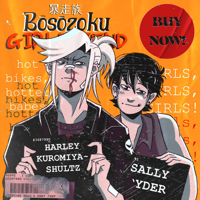 Bosozoku Girlfriend is an ongoing GL Drama Webcomic about butch lesbians, bikers, and bad decisions.The comic follows the budding romance between Sal Ryder, a promiscuous bike mechanic who's hit a rut in her life, and Harley Kuromiya, a no-nonsense biker gang leader with a soft side. An unlikely duo, these two women find solace each other's bad habits, learning to confront their past demons as they try to settle a decades-long gang war.